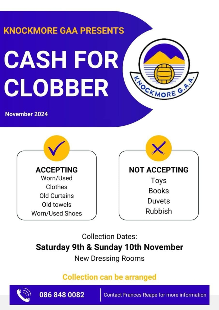 Knockmore GAA – Cash for Clobber Saturday 9th & Sunday 10th November 2024